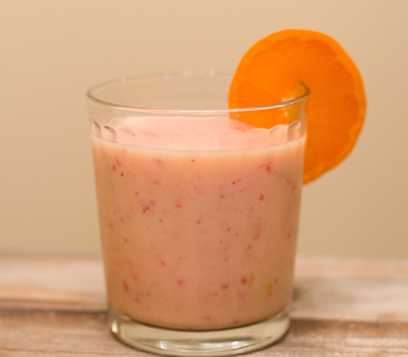 I love to drink smoothies! They are a refreshing snack that’s healthy too! I have a smoothie recipe I’d like to share with you. It’s a Mixed Fruit Smoothie and is super simple to make! There’s just three ingredients: orange juice, vanilla yogurt and frozen mixed fruit.