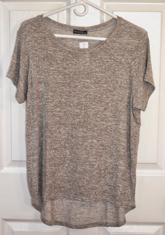 This tee is a soft gray material that is flowy. I like the way it’s made in the hi-low style. I would have kept this top, but the price point was a little too high for a tee, so I sent it back.