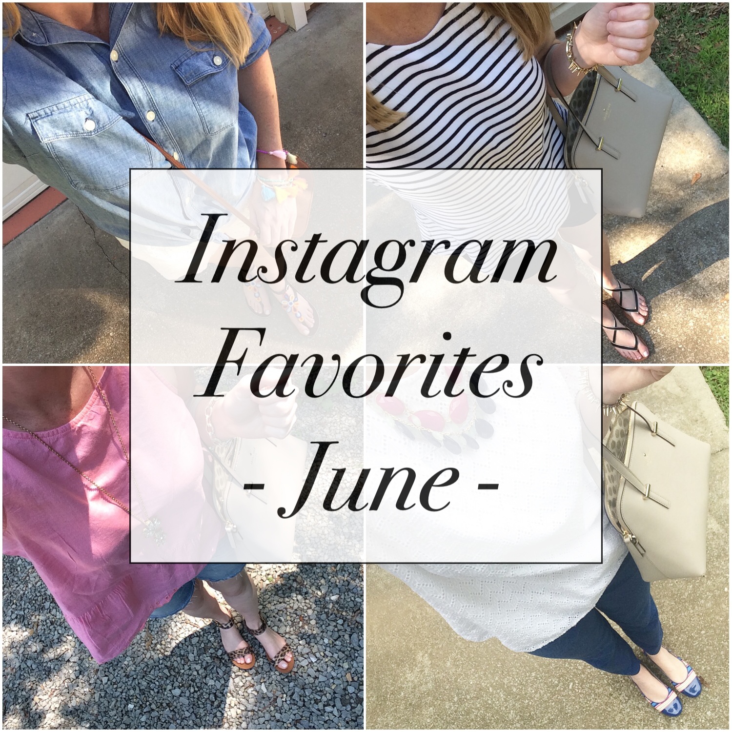 I’m sharing with you all my Instagram favorites from June. We went on a family vacation to the mountains in Tennessee for a few days in June and had a blast! We saw the Great Smokey Mountains National Park (for the umpteenth time, but I always love it), Dollywood Amusement Park (my daughter insisted we go there) and some shopping in Pigeon Forge. Two of my outfits here are what I wore on vacation (the black/white striped top and the coral-colored linen top).