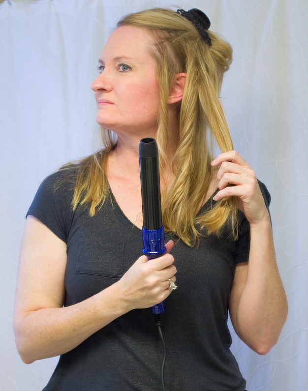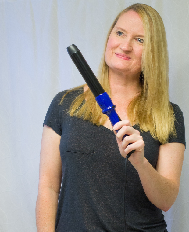 In the past I’ve used a curling iron to curl my hair. You know, the one where you put your hair in between the clamp and barrel, roll up your hair, then hope that your hair curls right. My curls didn’t last long at all. Then, I tried a curling wand purchased at a large retailer. It didn’t work very well. It took forever to heat up, then the curls didn’t hold very long, like, about an hour tops.
