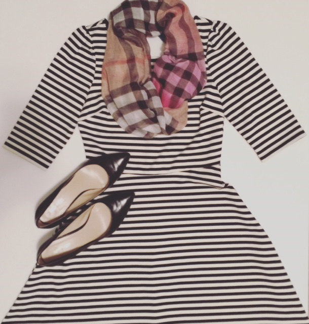 I bought this striped dress from Stitchfix box in March and it still looks new. I wore it with my plaid scarf from #leboutiqueshop.
