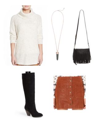 An ivory turtleneck sweater is an essential wardrobe piece, worn in the Fall, to Winter and even Spring season. This ivory sweater from Nordstrom is the perfect turtleneck sweater, with its relaxed turtleneck and tunic length. I picked two ways to wear this sweater: with a faux leather skirt and with black leggings. Of course, you could always wear it with colored jeans, like olive or burgandy, or dress it up for work with a pencil skirt.