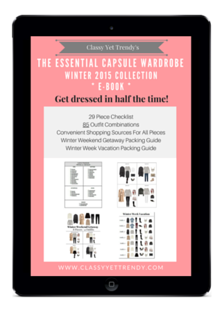 I’m excited to share with you all my NEW E-Book,ย The Essential Capsule Wardrobe: Winter 2015 Collection! ย Since outfit posts are the most popular posts on Fashion Elo, so I decided to start a capsule wardrobe E-Book series.
