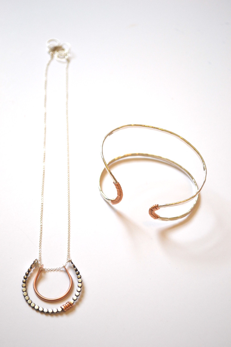 I received the Sterling Silver and Rose Gold Horseshoe Pendant necklace and Hammered Cuff bracelet. Both pieces are made by Dana Reed, a featured artist on the UncommonGoods website. Check out all their beautiful necklaces and bracelets!