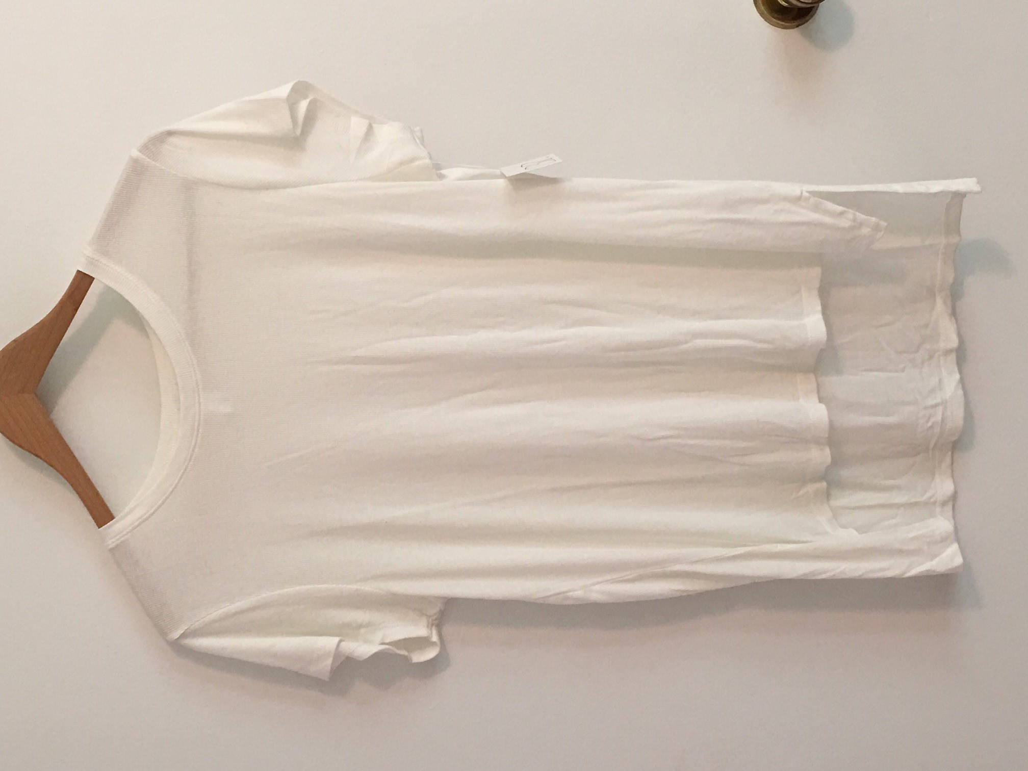 This top has a ribbed look, which I like because it helps hold its shape. The top is a little wrinkled, but with some ironing it will be good to go!