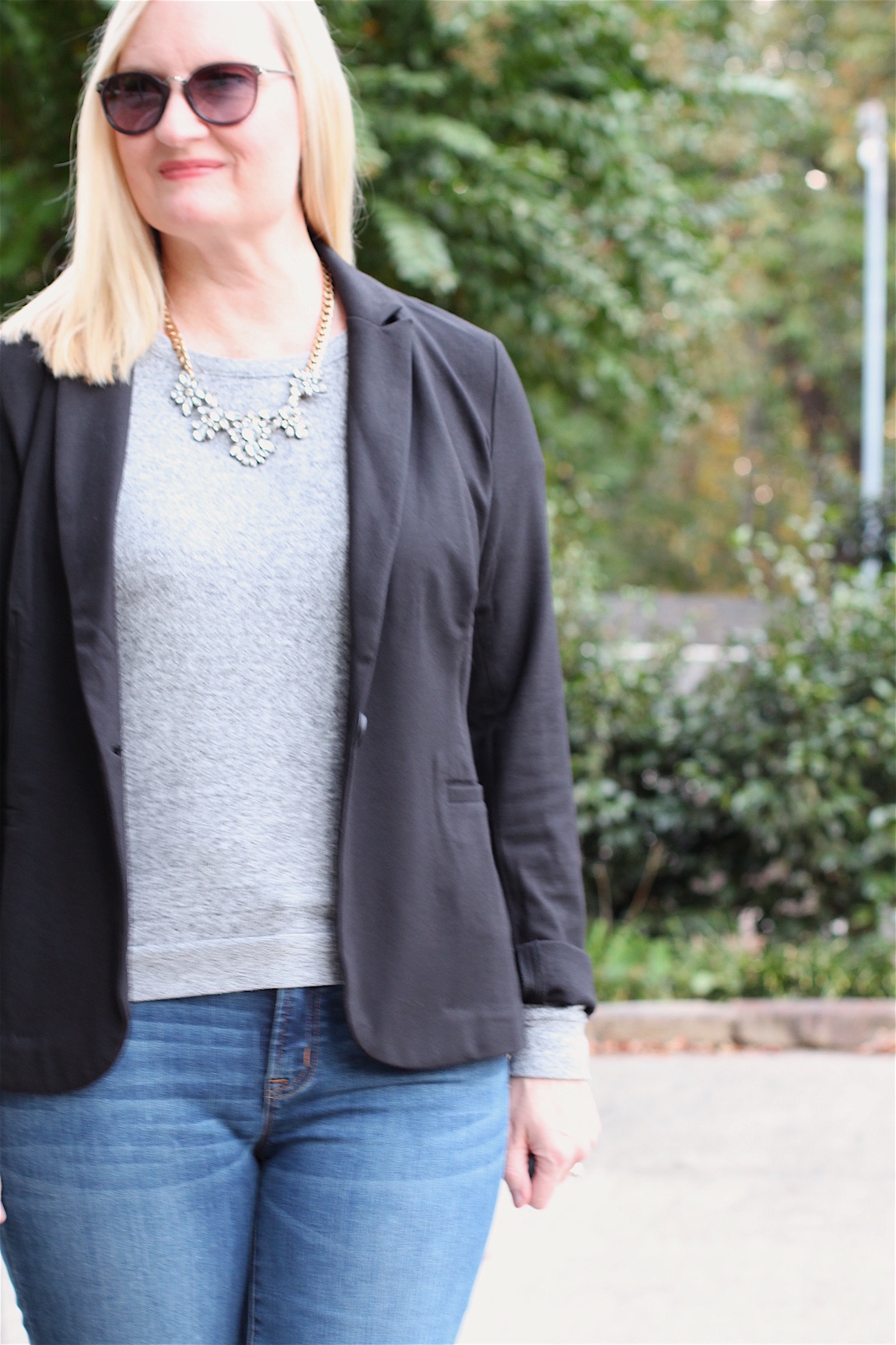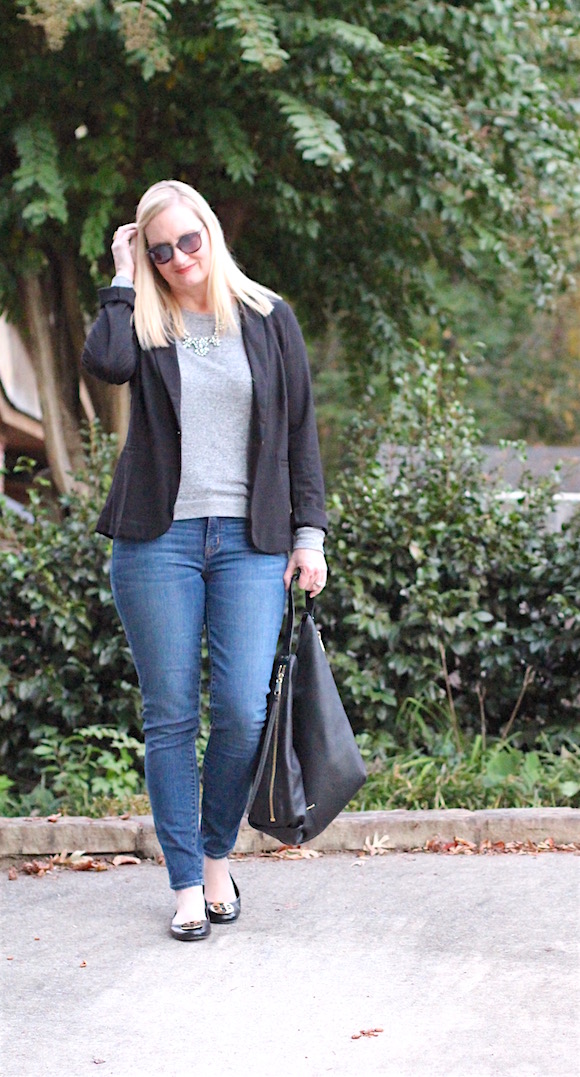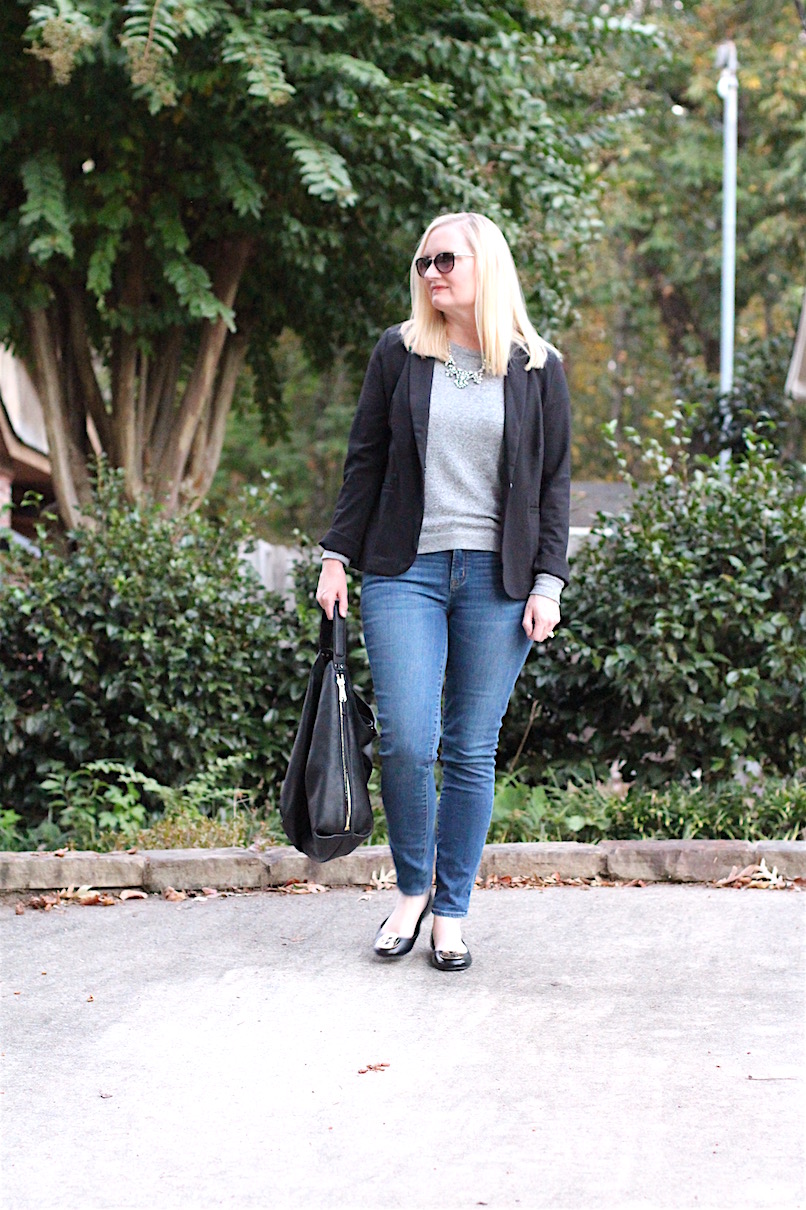 You can’t go wrong with jeans and a blazer! I love your black pumps!