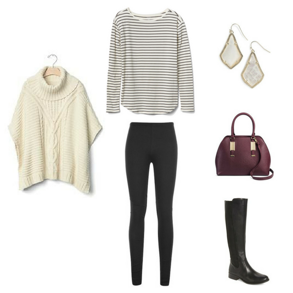 Winter is the perfect time to wear leggings. They are not only comfortable but they keep your legs warm too! They come in solid colors, like black, brown or navy, and there’s patterned ones too. Leggings fit right in a capsule wardrobe. Since leggings go with many tops, they make great essential pieces. If you opt for solid color leggings, you can wear them with more of a variety of tops, like these three ways as shown below.