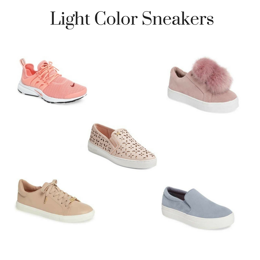 These soft, light color sneakers are so pretty, I would like to add a pair of these to my closet! Since this beige pair is a neutral color, you could wear this pair with several outfits. How adorable are these pink pom pom sneakers?! Imagine the compliments you would receive wearing them!