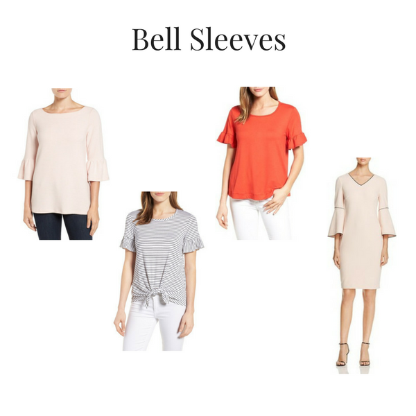 Bell sleeves has been the most noticeable trend this Spring. It is a fresh, feminine look! You’ll find this look mostly in tops and dresses and both solids and patterns.