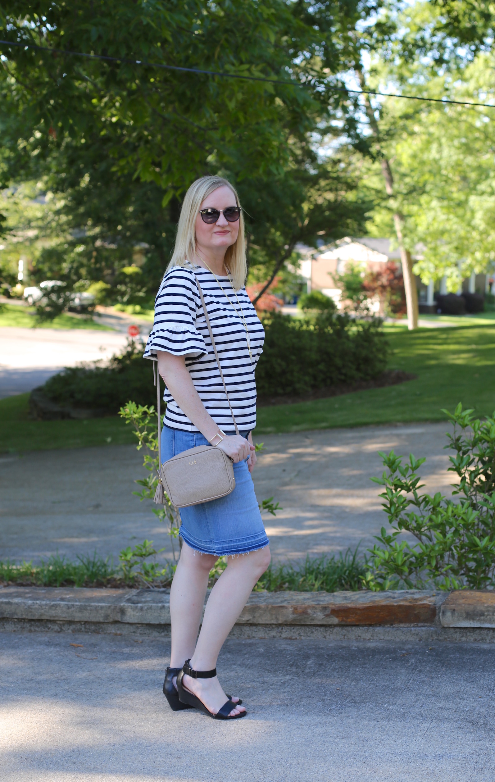 I’m really loving the denim skirt trend! It looks great styled with the striped top :).