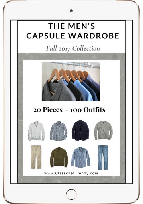 This post is a preview of the eBook, The Men’s Capsule Wardrobe: Fall 2017 Collection. I’m sharing a few featured items in the capsule wardrobe and shows how you can mix and match those items to create several outfits! The newest eBook is for the Fall season and includes 100 outfit ideas, plus much more. The style of clothes and shoes in this capsule is both business-casual and casual; a multi-functional capsule, perfect for work, going on a date, going to church and for the weekend too! This capsule features neutral colors, such as black, white/ivory and gray with blue and olive accent colors.