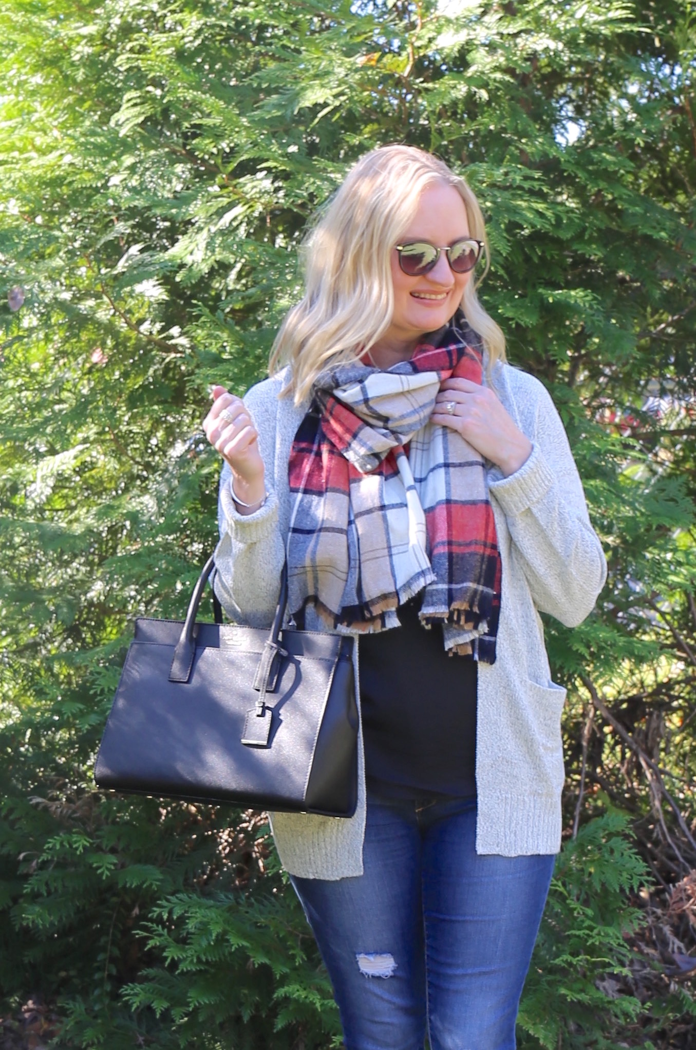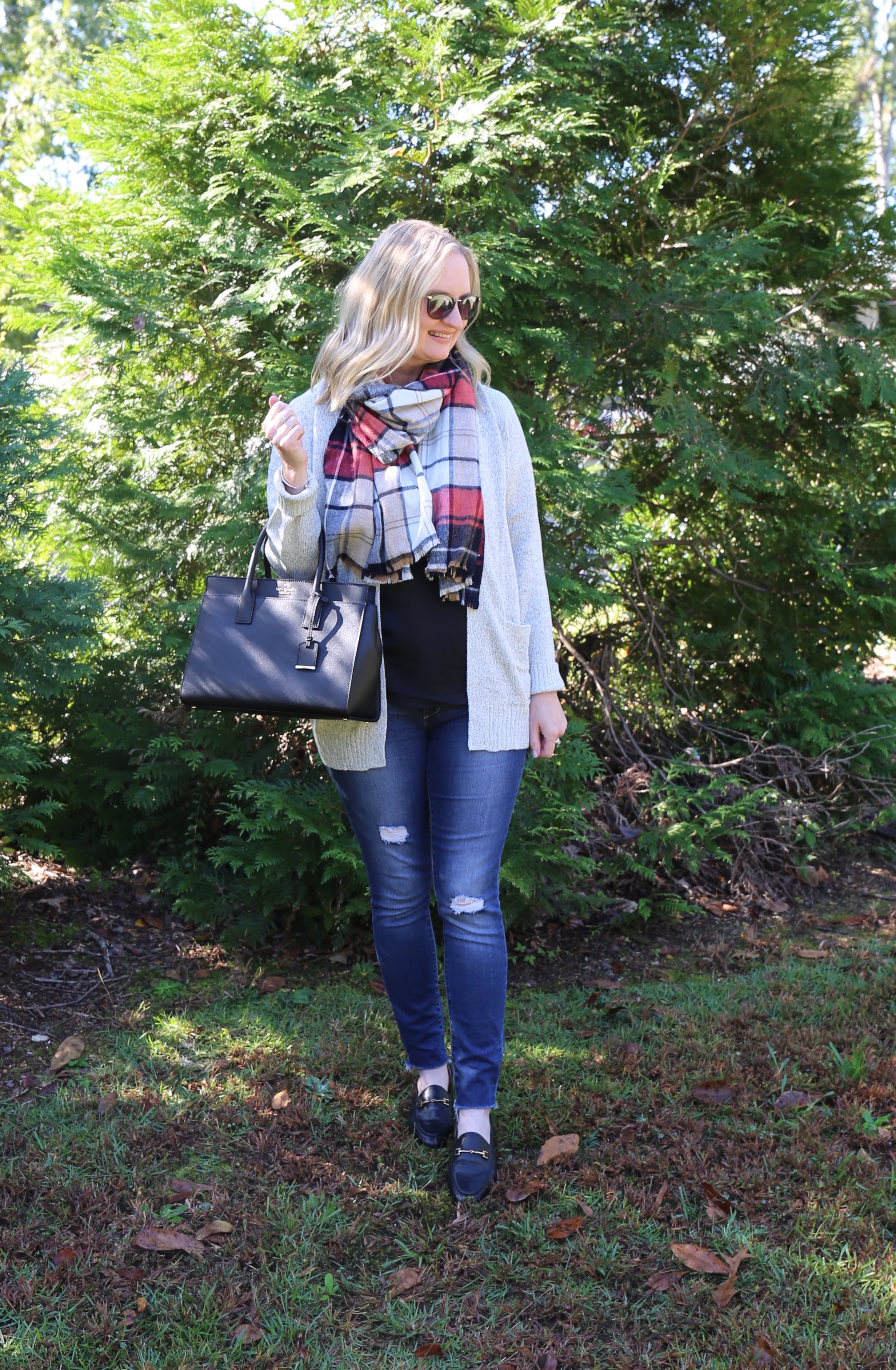 Such a great classic Fall outfit! I am loving your plaid scarf!