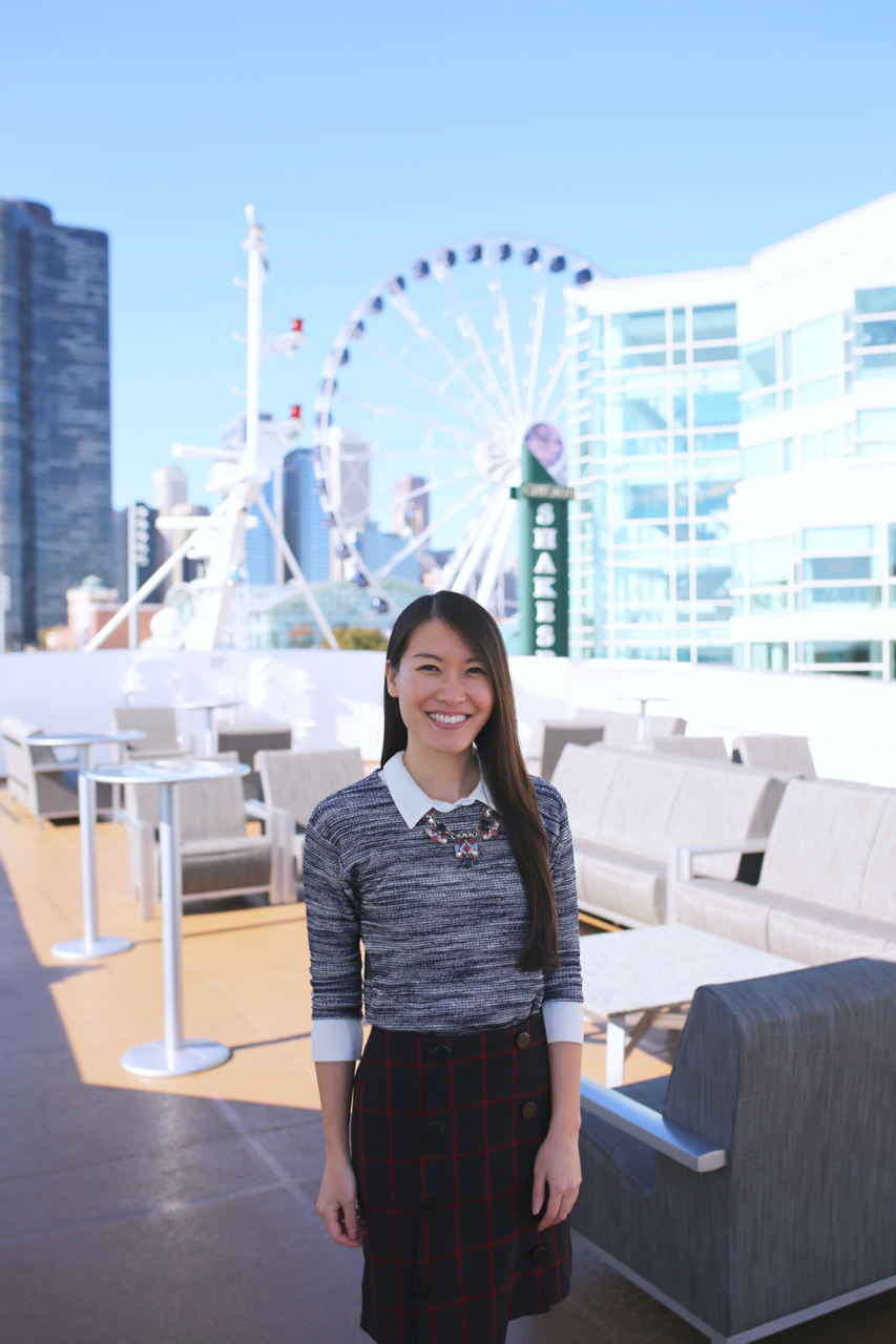 When Nordstrom had their anniversary sale a few months ago, I picked up this gray cashmere sleeveless cardigan. At first, I had wanted the camel color, but it sold out quickly. I ended up buying this gray color and I think I love it more than I would have the camel. I love wearing gray, but as with all color tones, I have to pick the right tone for my skin tone. I look washed out wearing some gray colors, but colors like this one I’m wearing above is the best color tone for me. This “perfect” tee from J Crew is just that, it’s a perfect fit! It’s great to wear with layers like this cardigan, or wear by itself, like with a scarf.
