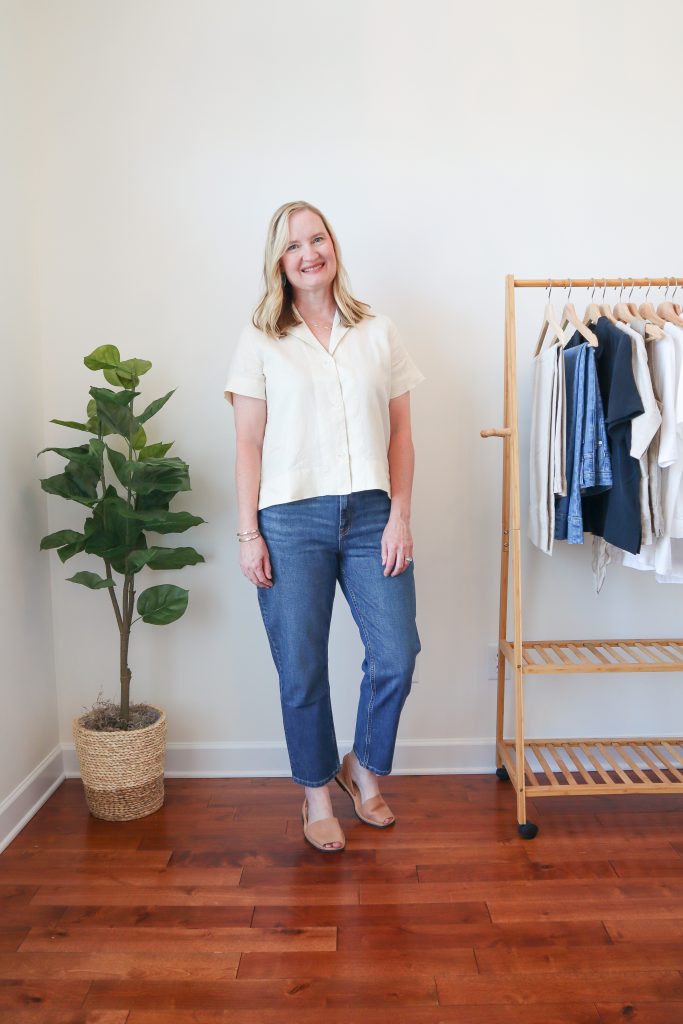 I partnered with Everlane on this post to review their Linen Short Sleeve Notch Shirt. I received the “canvas” color and ya’ll it is amazing! I had wanted to order the “white” color, but it is backordered. I don’t have many ivory color tops, so I knew it would fit in perfectly in my Summer capsule wardrobe.
