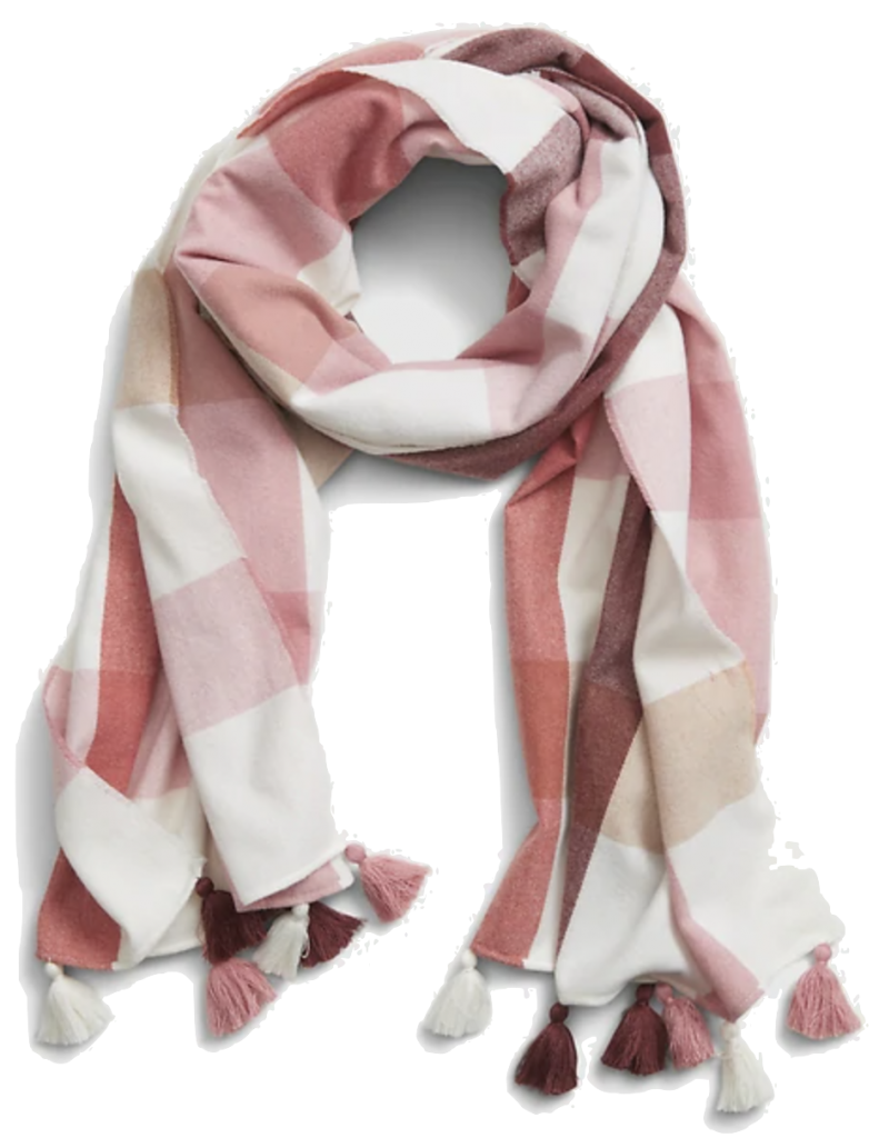 Cozy Scarf in “ivory & pink check” also comes in several other colors!