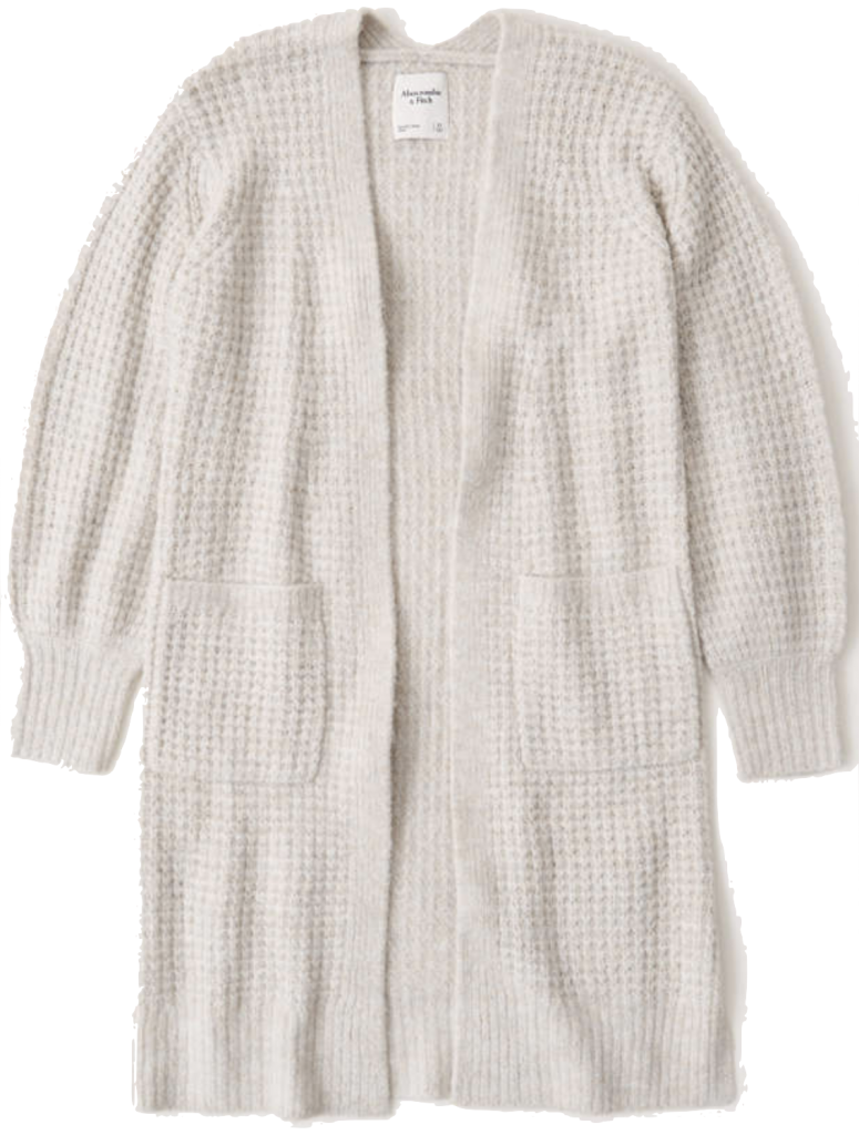 Waffle Stitch Cardigan in the “cream” color and also comes in gray, camel and blue-green