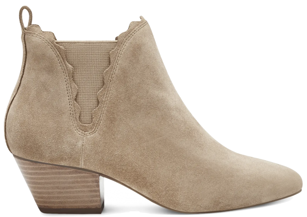 Suede Booties in “honey stone” color also comes in “mushroom suede” color