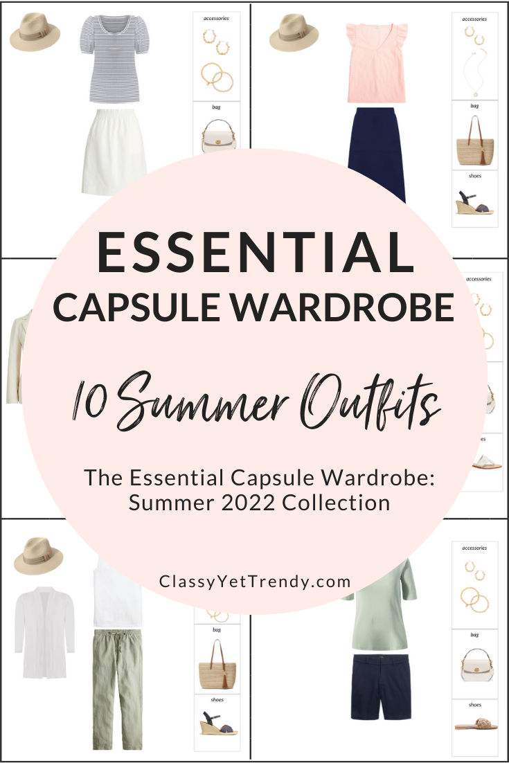 This post is a sneak peek of a NEW collection in the capsule wardrobe series, The Essential Capsule Wardrobe: Summer 2022 Collection. I’m sharing a few items in the capsule wardrobe and showing how you can mix and match those items to create several outfits! This collection is for the Summer season and includes 100 outfit ideas.