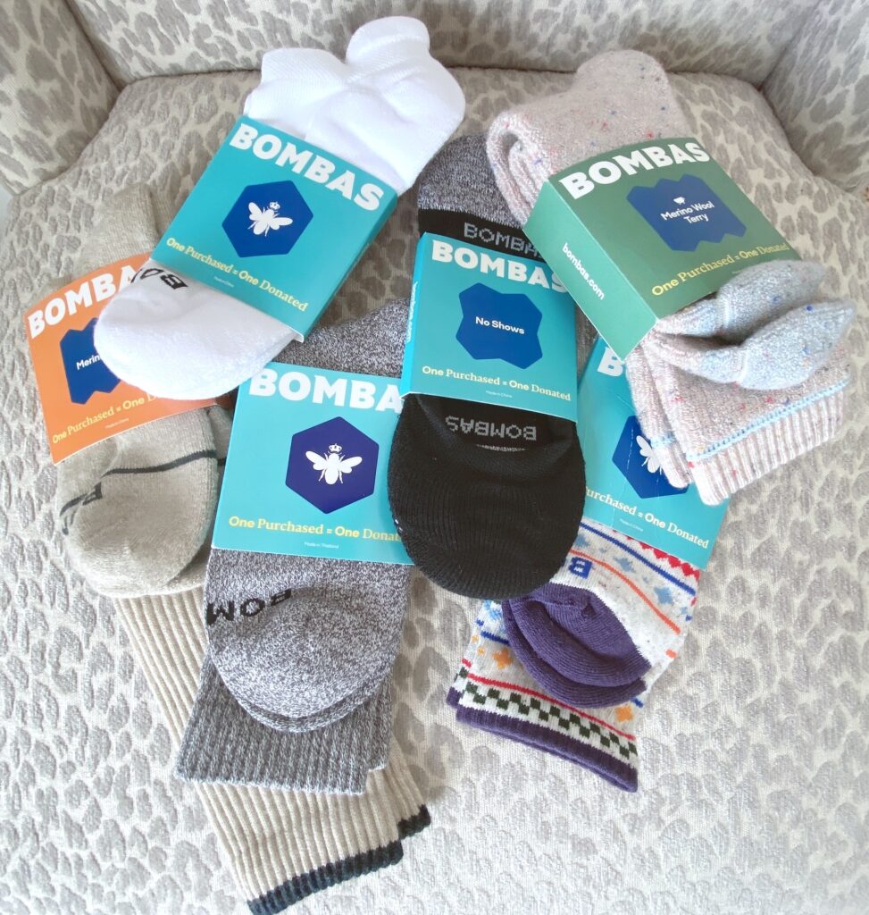 For every sock purchased, Bombas donates a pair to someone in need. Socks are the #1 most requested item in homeless shelters. Bombas has donated over 75 million items since they started several years ago. Find out more about their mission here.