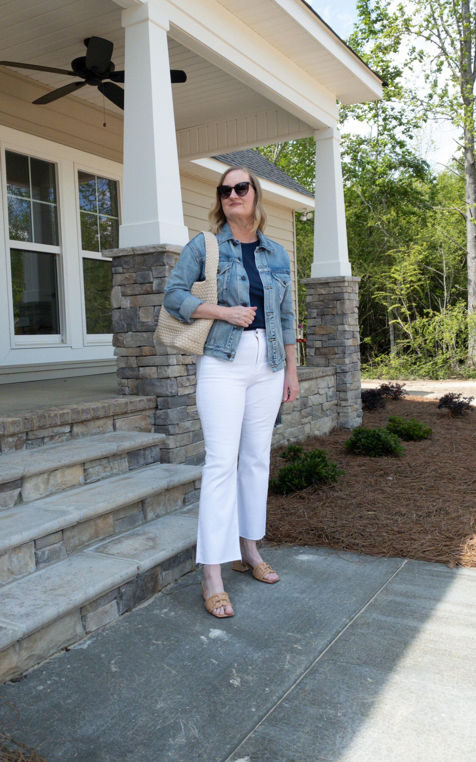 Spring is officially here, along with nice weather, green grass and flowers! My favorite season is Spring. I love all the greenery, fresh air and the light and airy fashion styles to reflect the season! After almost a year, we have finished building our house! We found a couple of acres for sale about three miles from where we lived, so we decided it would be a better place for us to live. The style of house we built is a craftsman/farmhouse. Since it is just my hubby and me, we decided to downsize and build a smaller, more efficient house. When it was finished, I had to take off from blogging and social media several weeks for us to prepare our other house ready to list for sale, move into our new house and unpack everything. We are officially moved in, but we have been finishing up some things on the inside of the house. The ground work and landscaping are complete and will soon plant grass. While it was nice taking a break from social media, I have never been more ready to get back to work! Now I can focus on creating capsule wardrobe content for you all, then in a few weeks I will be publishing the Summer capsules!