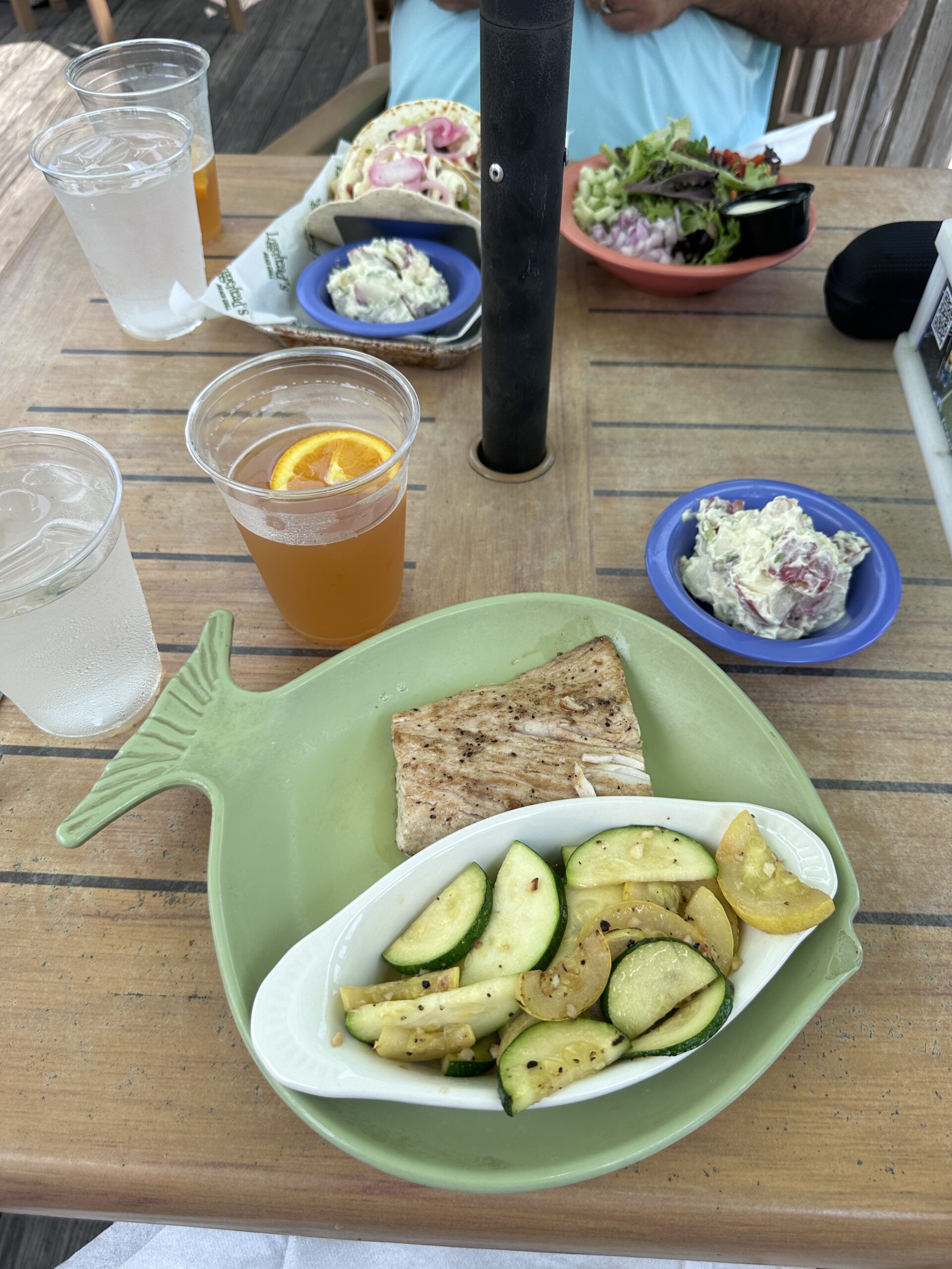 This was our last day in Charleston, so we decided to relax a bit and spend the day in the Folly Beach area. Folly Beach is the busier beach in Charleston and there are several hotels, shops and restaurants. We arrived mid-morning and parked at the Folly Beach County Park. All day parking was $15 and you can come and go whenever needed. The Dune House in the parking area has nice restrooms, a snack bar, covered and uncovered picnic tables, beautiful view of the beach and boardwalks that lead to the beach. It is one of the nicest beaches I have visited and we want to go back! The sand is clean and you can hunt for the many shells that washes up on the beach. We took our beach towels and laid out on the beach for some time. We decided to leave the beach and eat in town at Loggerhead’s Beach Grill. It is a rooftop restaurant with umbrella tables. I ate the Mahi Mahi pan seared with squash/zucchini sauteed and potato salad. My hubby got the Mahi Mahi Tacos with potato salad. It was delicious and the service was great! After lunch, we went back to the beach and just walked along the beach and hunt for shark teeth and shells. We didn’t find any shark teeth but we found several shells!