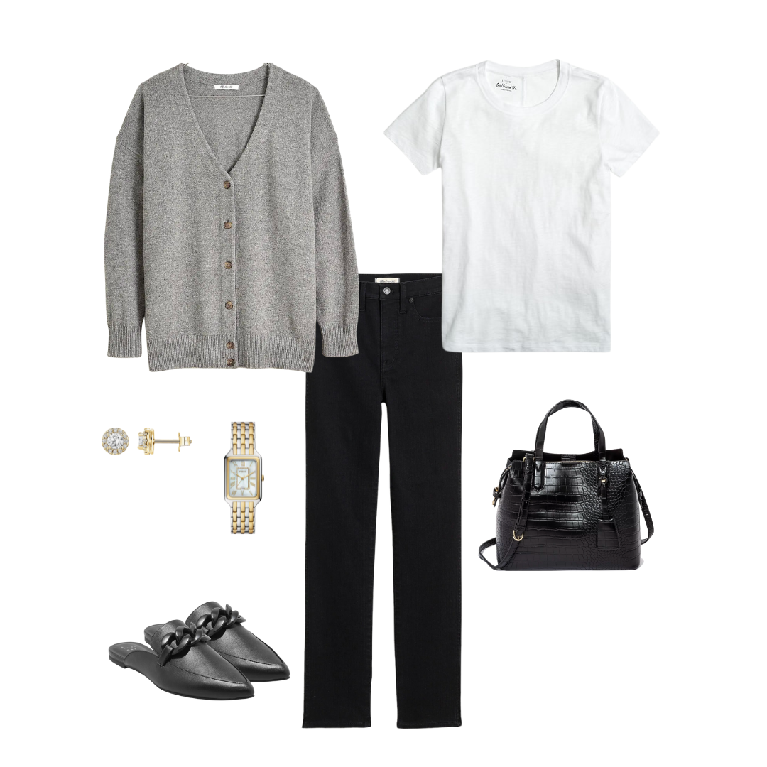 In today’s post, I am sharing how to add different layers and shoes to a white tee and black jeans to create six outfits. There are several styles of outfits in this post, including smart casual outfits you can wear to work and casual outfits you can wear anywhere else! I feature these Black Stovepipe Straight Jeans in the outfits, but these Black Kate Straight Leg Pants are also lovely (40% off for Passport reward members until Sept. 20)! I have the Kate pants in both black and graphite colors and love them!