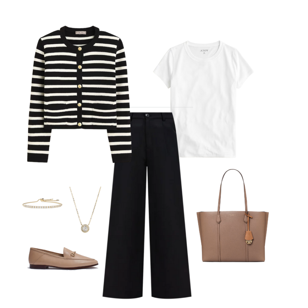 Several retailers have their own style and colors of lady jackets. This Emilie Patch Pocket Lady Jacket from J. Crew comes in several colors and patterns. I love this jacket and bought it in the “black ivory stripe” and “black” colors! I also bought the J. Crew Factory one in the “hthr oatmeal tweed” color! I have the “black” and the “hthr oatmeal tweed” lady jackets in My 29-Piece Fall 2023 Classic Neutral Capsule Wardrobe In My Closet.