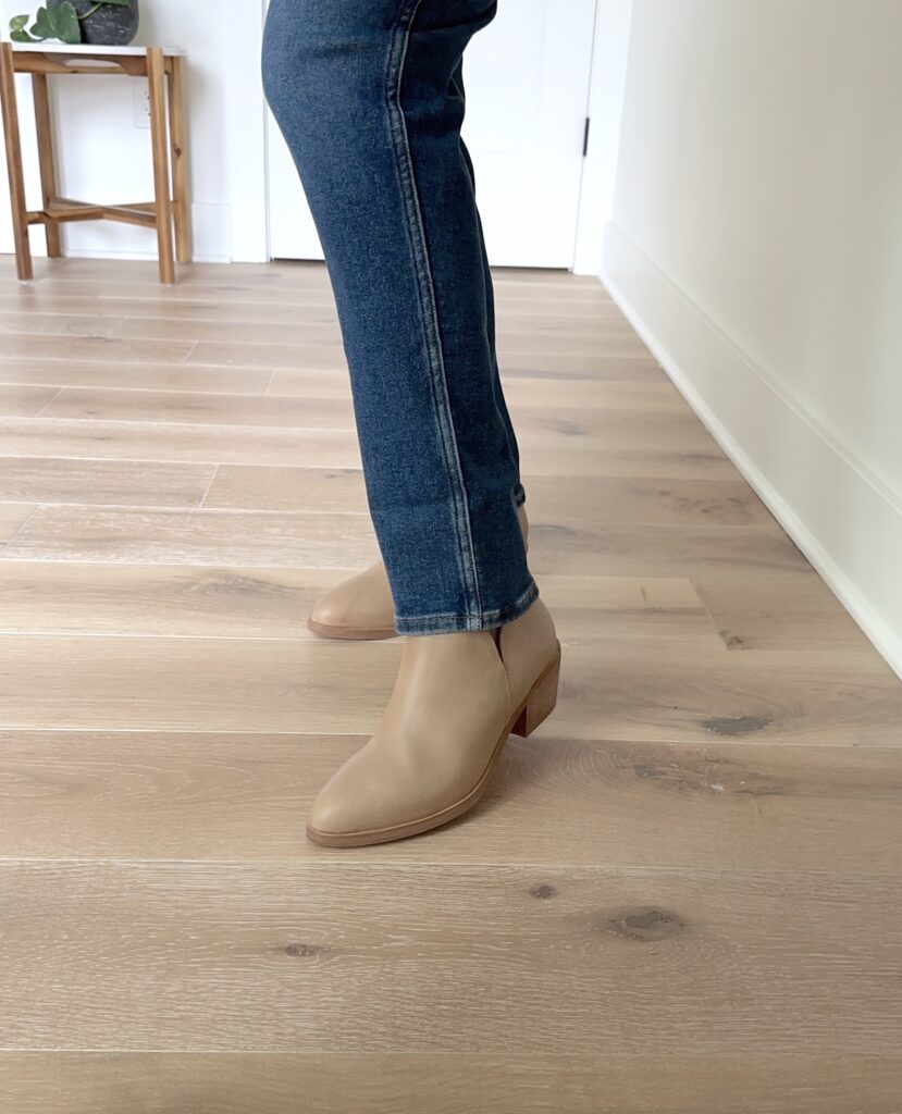 The Nisolo “Classic Ankle Boots” are on sale, which are VERY similar to the Mia Ankle Boots in “almond” (size 9 c/o), not on sale, that I’m wearing! And, this Donegal Cable Cardigan Sweater (size Large) that I’m wearing is on sale for 40% off!