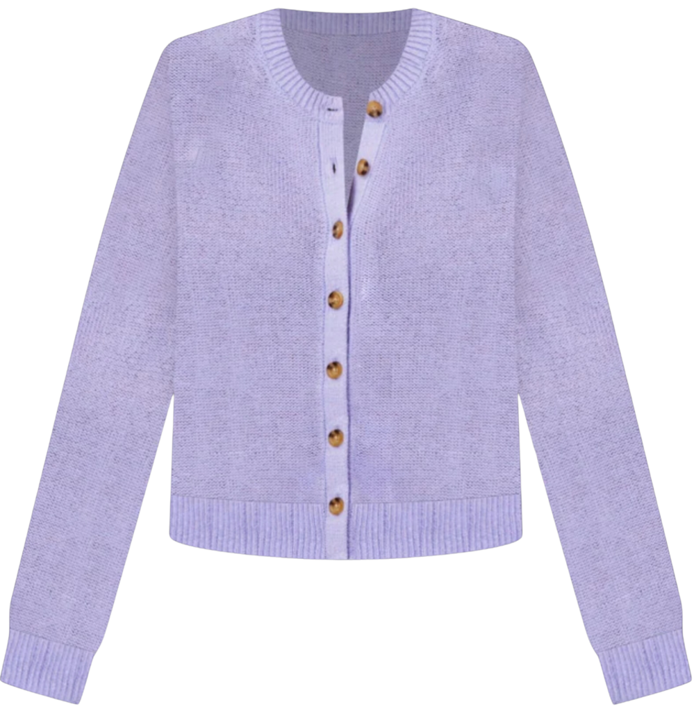 Ann Cardigan in “Purple Petal” Lavender is trending for the Spring season!