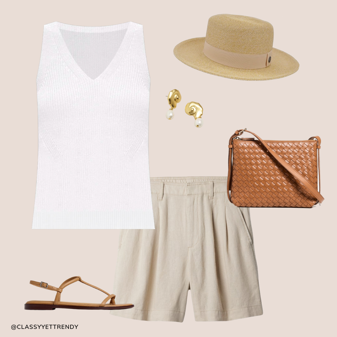 Crochet sweater tank tops are trending this summer! Several retailers have them in their summer collections and are available in a range of styles and colors. If you are looking to add one to your closet but don’t know how to wear it, I have a few outfit ideas to get you started! All the clothes, shoes and accessories are in The French Riviera Capsule Wardrobe: Summer 2024 Collection. This season capsule wardrobe includes several wardrobe staples in neutral colors, plus a few trending pieces for the season. It includes 100 outfit ideas, an outfits calendar, travel packing mini capsule, plus more!