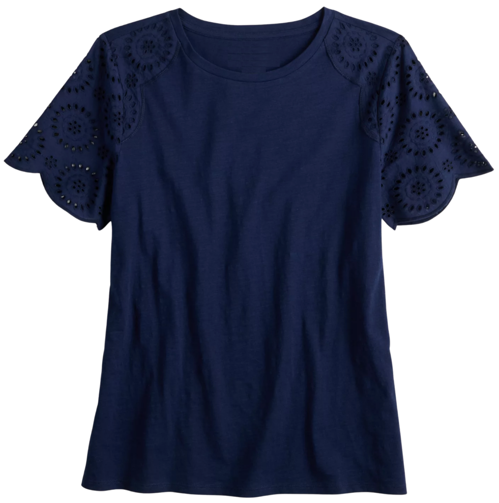 I found another top at Kohl’s that will be perfect for this Everyday Casual Capsule Wardrobe! It’s the Draper James Puff Sleeve Top in this beautiful Spring-themed pattern!