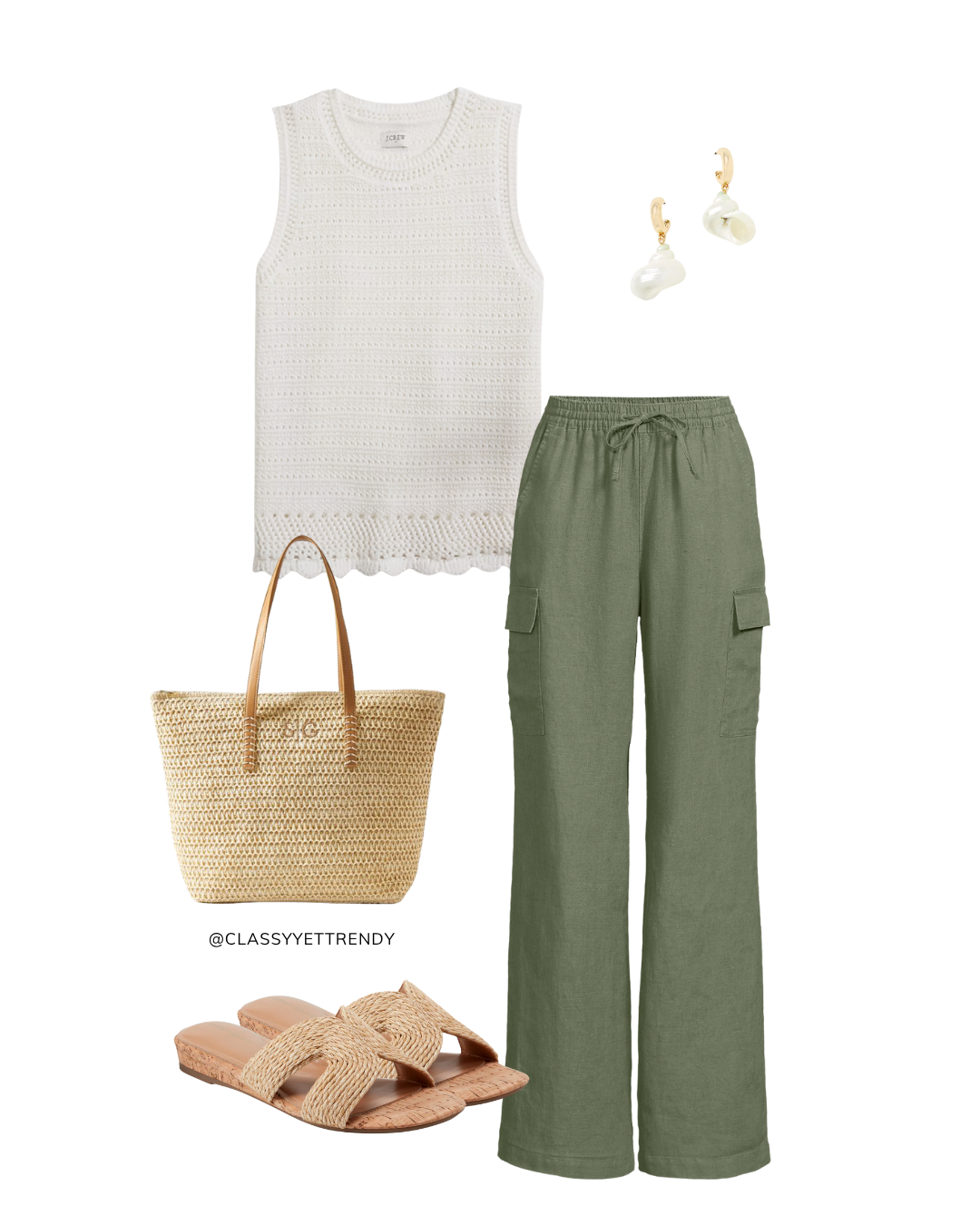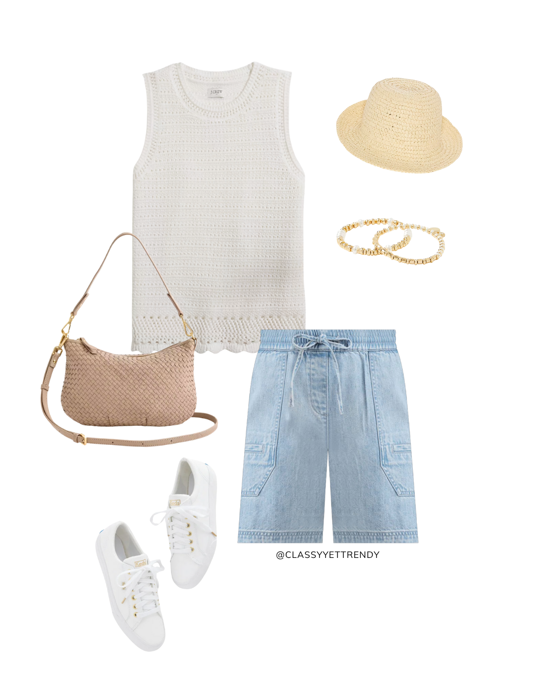 Crochet sweater tanks are on trend this spring and summer! They became popular last summer and I am so glad to see they have returned. You can find this style of top at many retailers in different weaves and colors. The one I’m featuring in this post is the Crochet Sweater Tank in “ivory” at J. Crew Factory. This top is included in The Coastal Vibes Capsule Wardrobe: Summer 2025 Collection, which is in the Capsule Wardrobe Store!