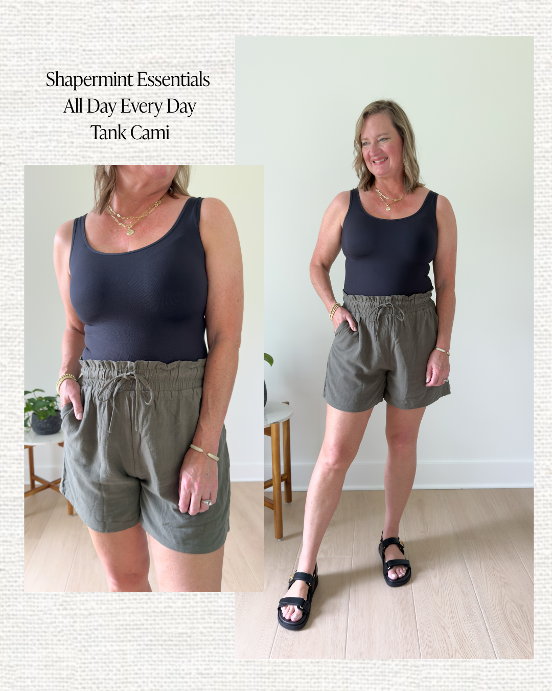 When I tried on the Shapermint Essentials All Day Every Day Tank Cami in “black” (I’m wearing the size 10/12) I loved the way it fit my body! It slims, smoothes and lifts my chest area and acentuates my neckline. The straps are wide enough so you can wear a regular bra! This tank fits like a bodysuit but without the fussy snaps at the crotch inseam and tucks in easy to your bottoms!