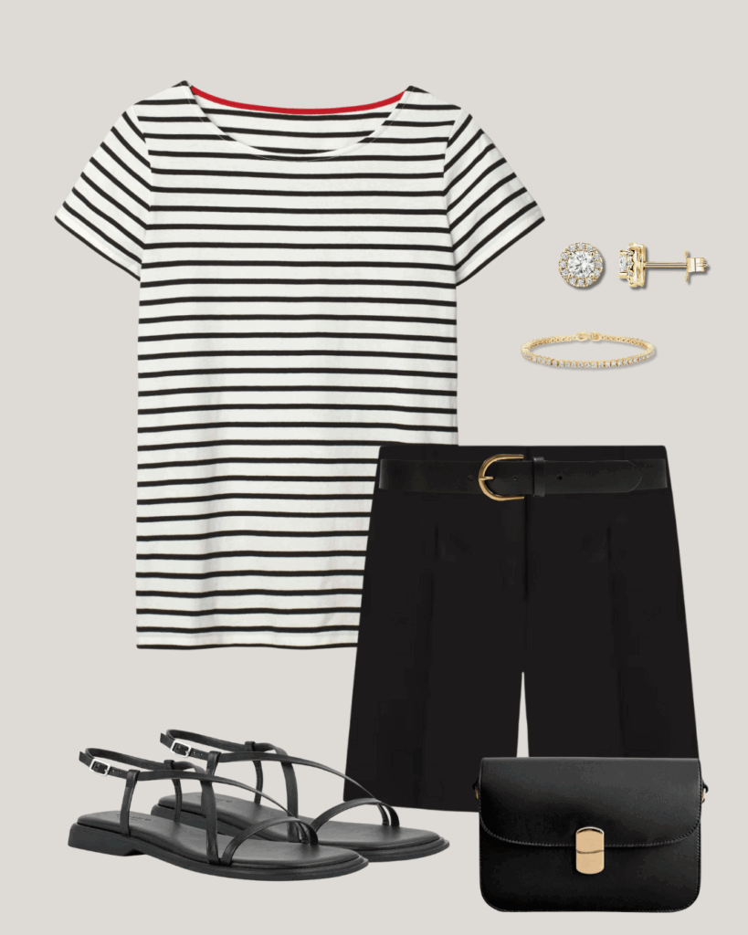 The tops, bottoms and shoes in this mini capsule are included in Simplified Style: French Wardrobe Staples. In the year-round guide, there are 2 shopping links for each piece in the capsule.