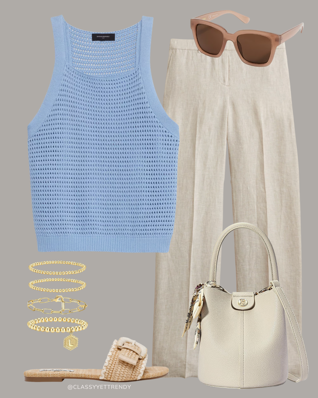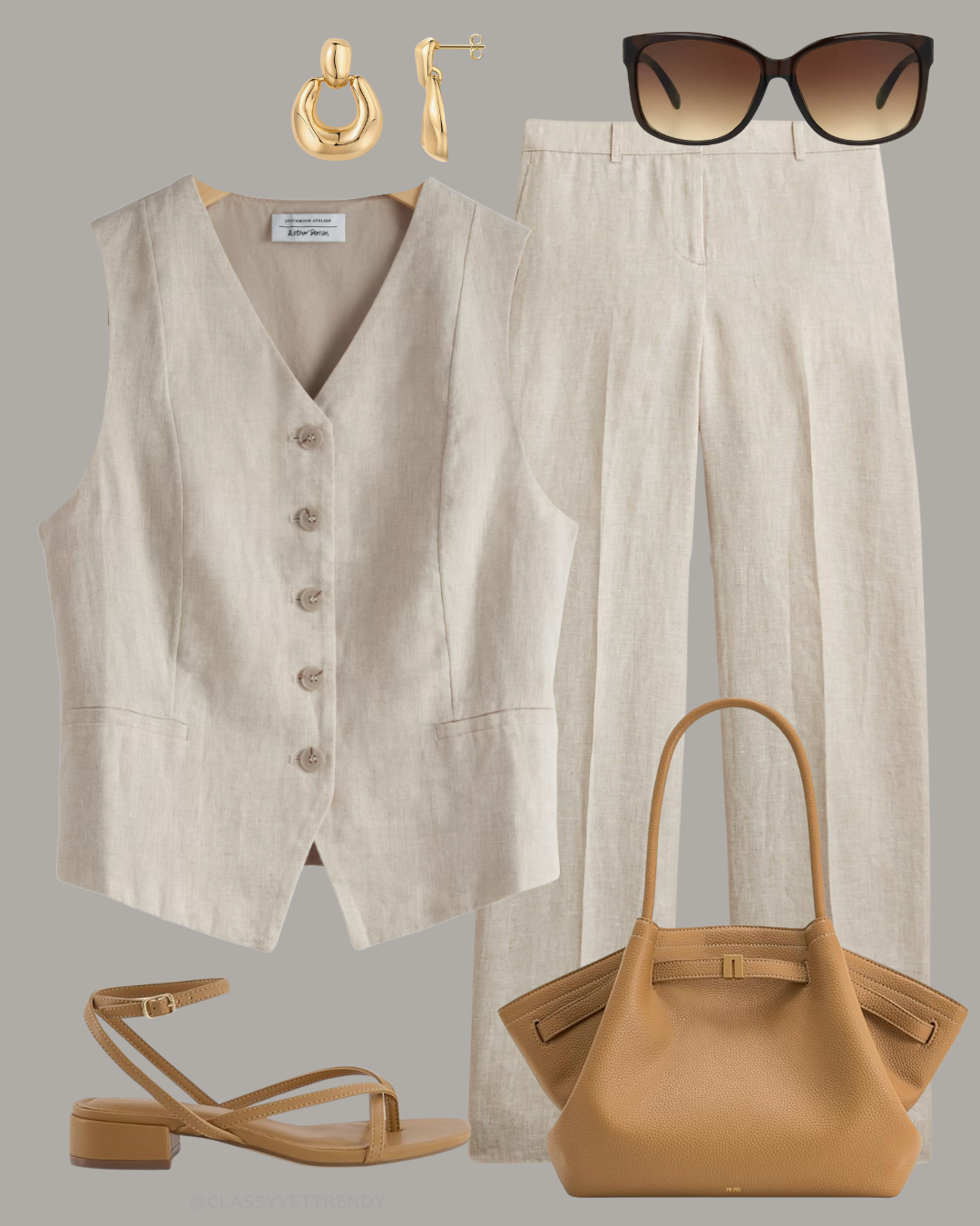 Here are six outfits featuring the Linen Tailored Pants in the “flax” color. Shop the linen tailored pants here: