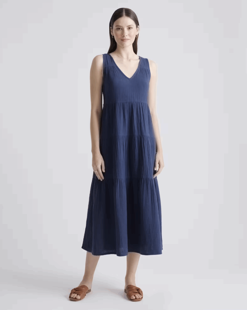 I have had this Organic Cotton Gauze Tiered Maxi Dress in the “Indigo Blue” color for a couple of years and it still looks great! I’m wearing my usual size Large. I love wearing this dress in the summer since it is cool and breezy! The indigo blue color is such a lovely neutral color and goes with so many shoes and accessories in my closet. I’m wearing it casually with sandals, but I have also dressed it up with heels and a blazer. I recently found this Bostanten Top Handle Small Crossbody Bag in “Brown” on Amazon and had to order it! It looks nearly identical to the Strathberry Mosaic Bag, but is budget priced at less than $37!