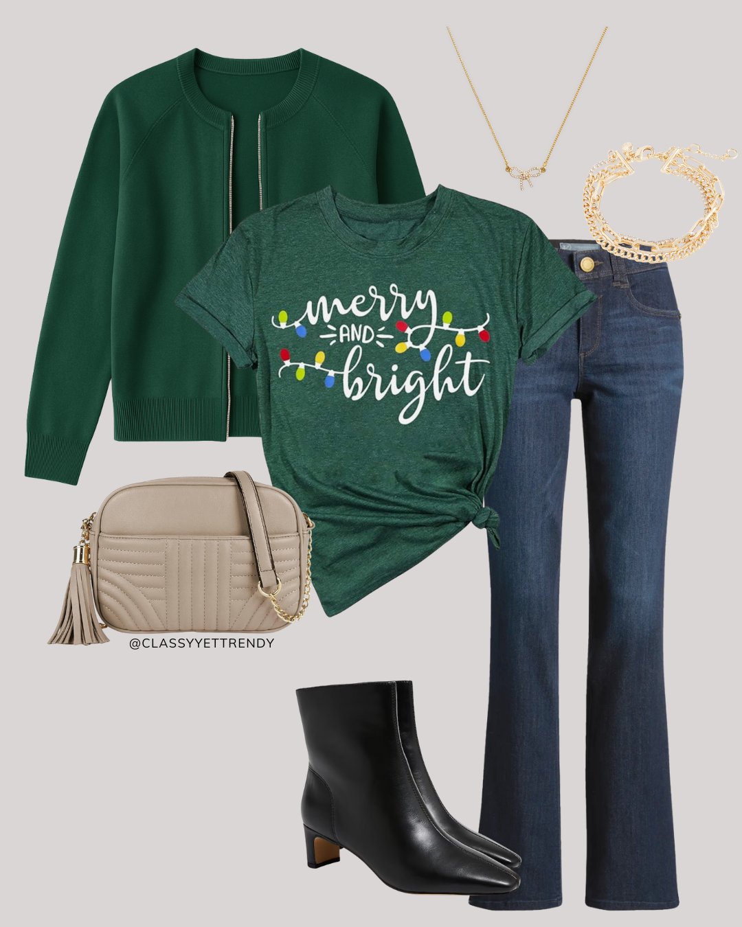 You can use this mini capsule wardrobe to take with you while you are traveling for the holidays! This mini capsule packs conveniently in your suitcase, so you can have festive outfits to wear while you are on vacation or visiting family or friends during the holidays.