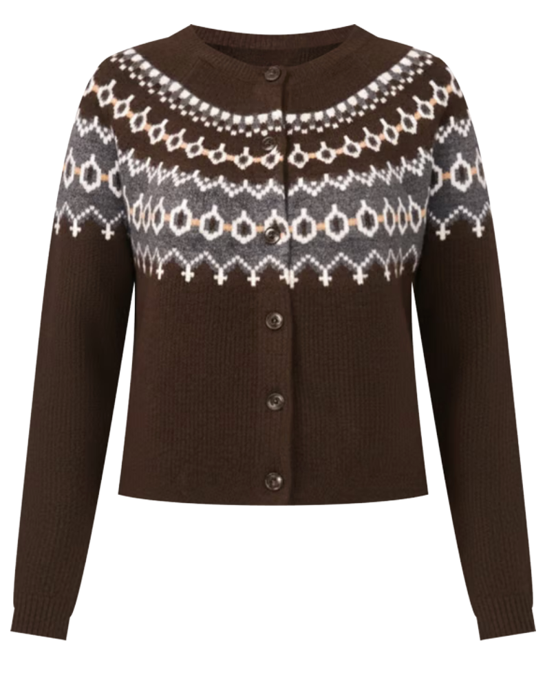 Chocolate Brown Fair Isle Cardigan Sweater This one is gorgeous!