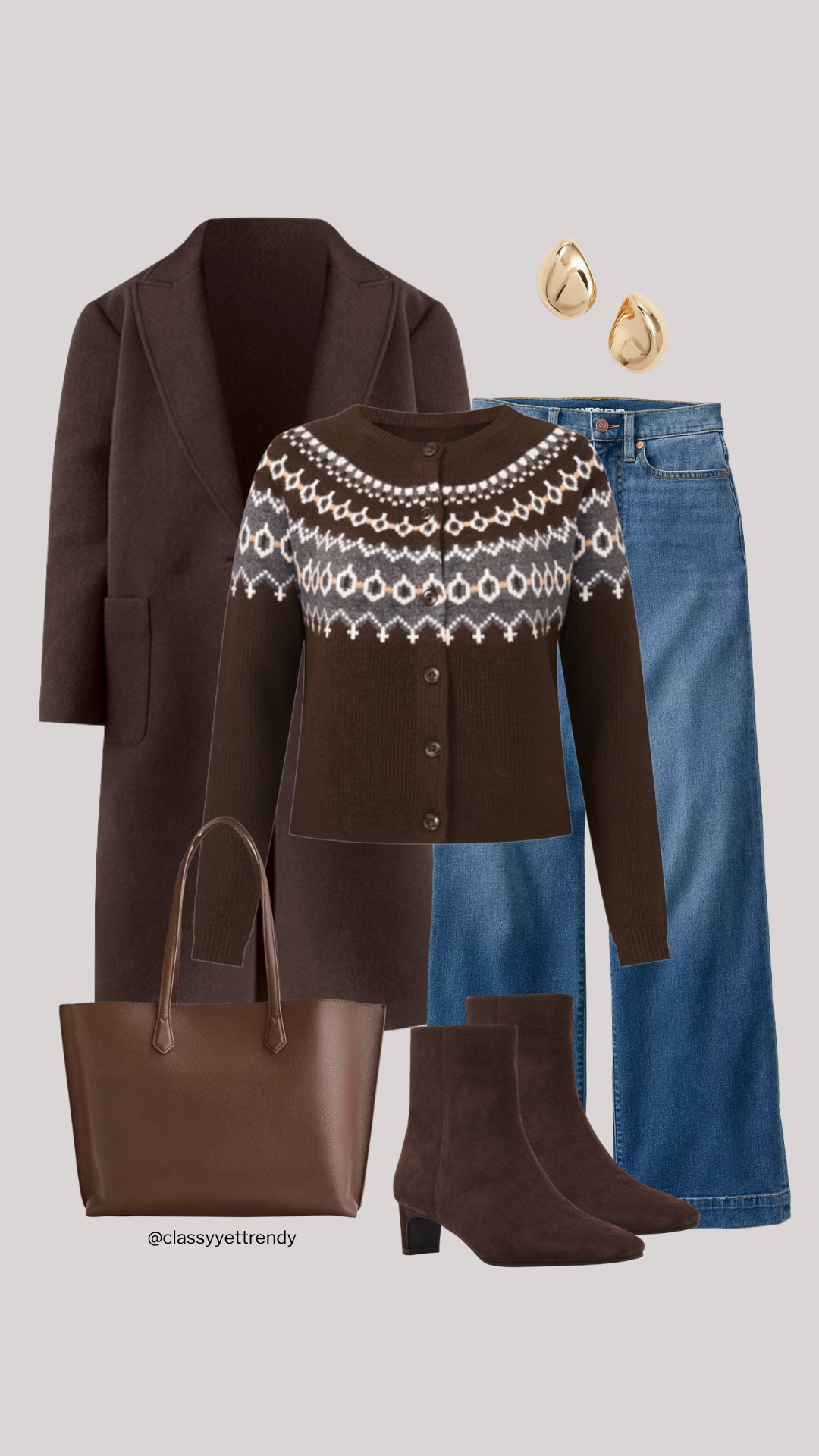 Chocolate Brown Fair Isle Cardigan Sweater This one is gorgeous!