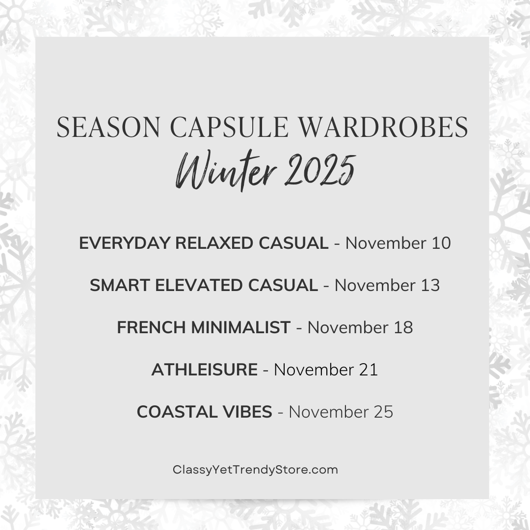 The Winter 2025 Capsule Wardrobes are coming soon! Winter will be here before we know it, so now is the time to get your closet prepped and ready for the upcoming season.