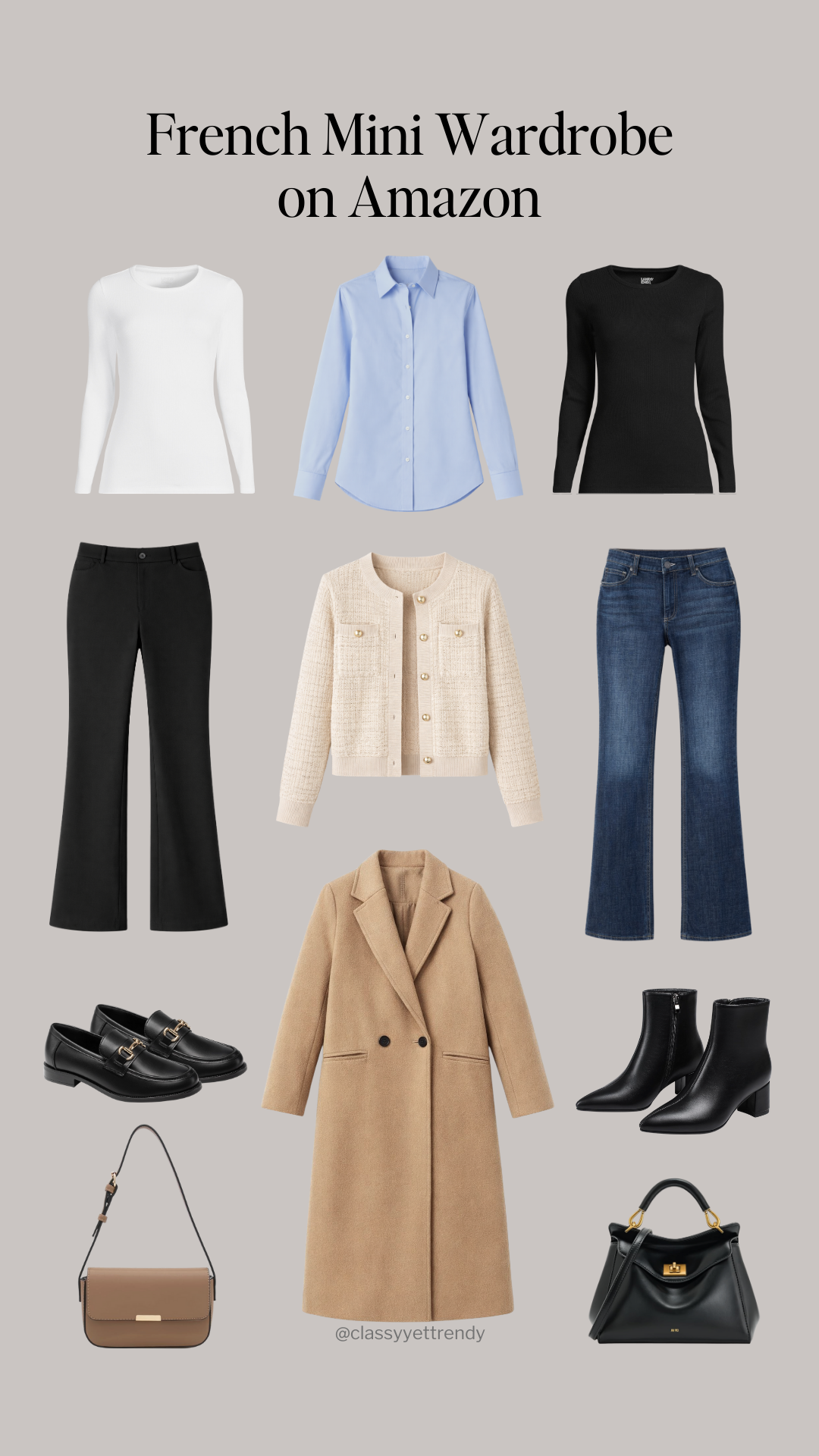 Here is the 9-Piece mini capsule wardrobe, which includes all Amazon budget-priced pieces!