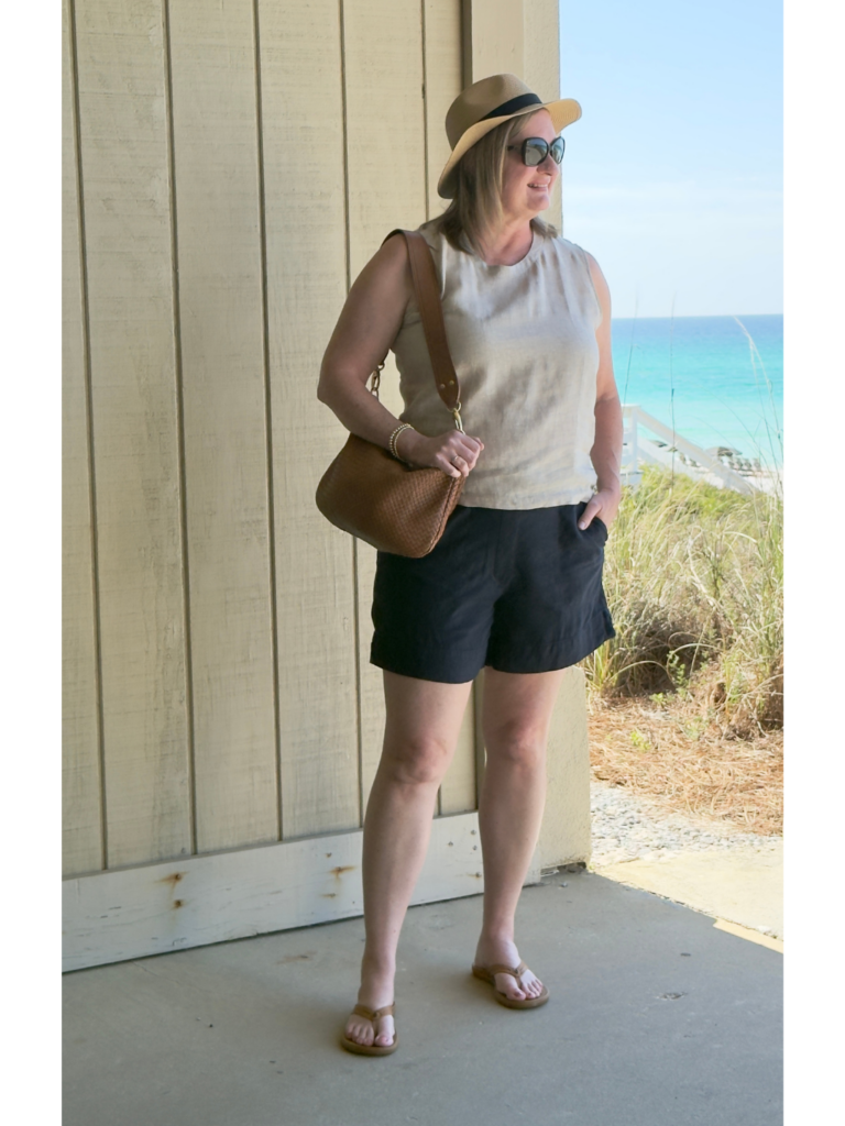 My Day 2 outfit was this Popover Top in “medium wash”, Linen Shorts in “flax” and these Strap Comfort Sandals in “tan waxy burnished”. We spent the morning resting in the condo and sitting on the balcony overlooking the beach. We ate a late lunch at Stinky’s Fish Camp in Santa Rosa Beach. Stinky’s is our favorite restaurant on 30A and their fish tacos are delicious!