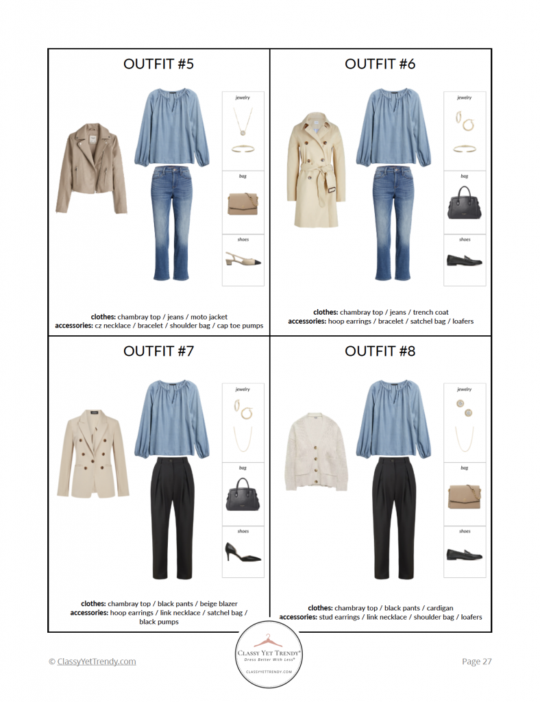 so you’ll have 100 outfits from just 23 clothes and shoes!