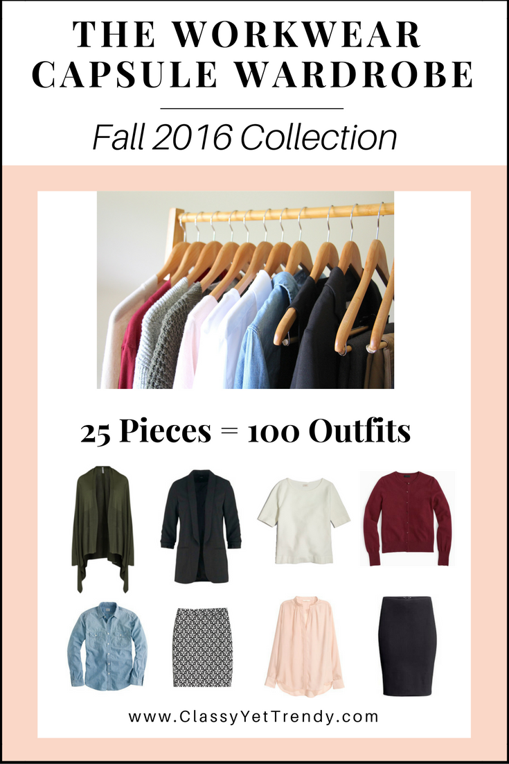 The Workwear Capsule Wardrobe: Fall 2016 Collection is a 50-page e-book that will show you how to create 100 outfits from 25 classic business-wear pieces!